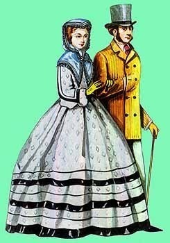 Сопровождающий ее джентльмен одет в длинный пиджак,
